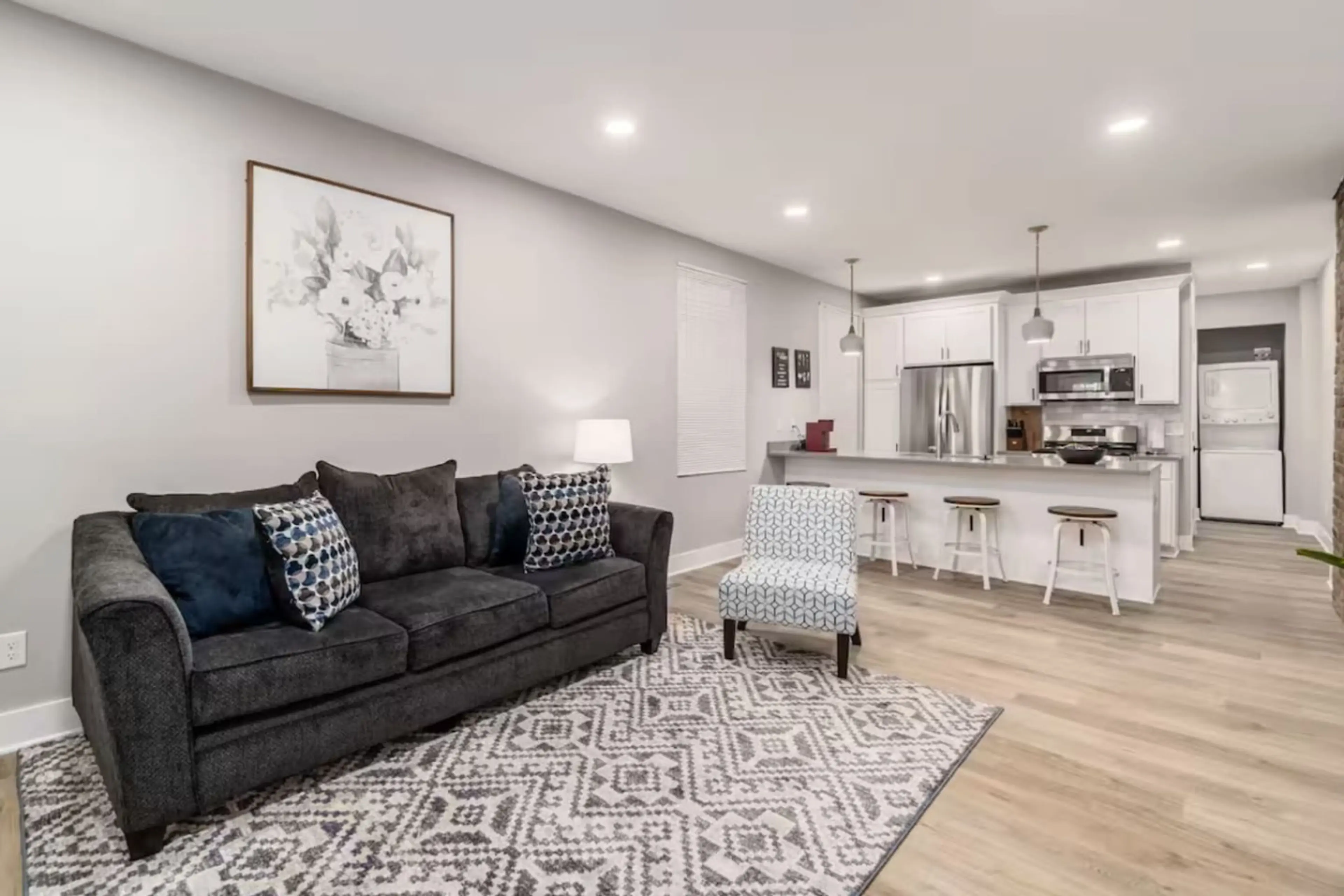 This is a stylish 3BR/2BA downtown Columbus with a king, two queens, and two singles. TVs in every room, a private fenced backyard with hot tub, and free parking. Located in a great area close to everything—perfect for families, groups, or extended stays.