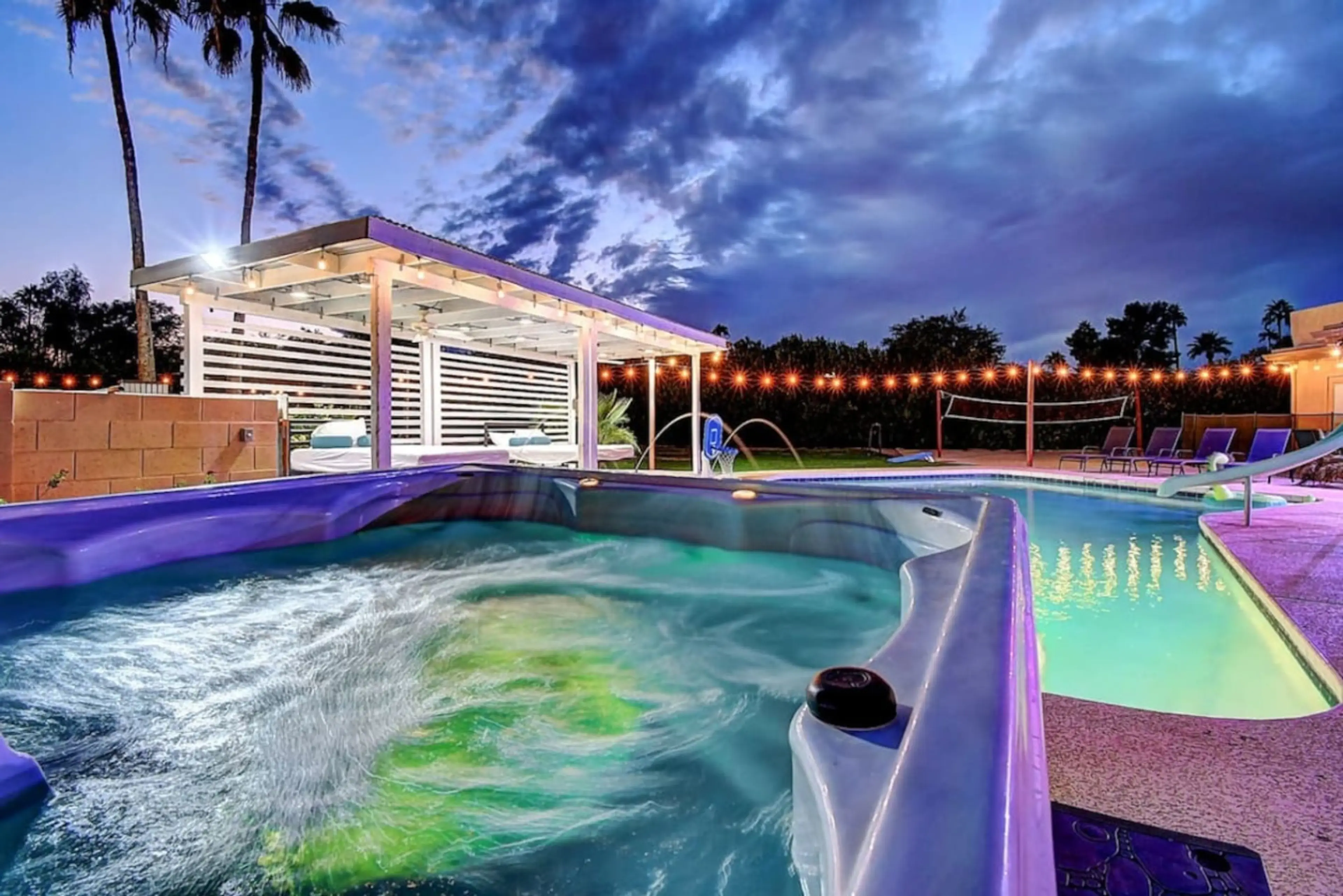 Experience the ultimate Scottsdale getaway in this stunning 8-bedrooms retreat featuring 15 beds, perfect for large groups. Enjoy a heated pool with a fun slide, relaxing spa, and a private sport court for endless entertainment. Inside, unwind in the game lounge or gather in the sleek open-concept l...