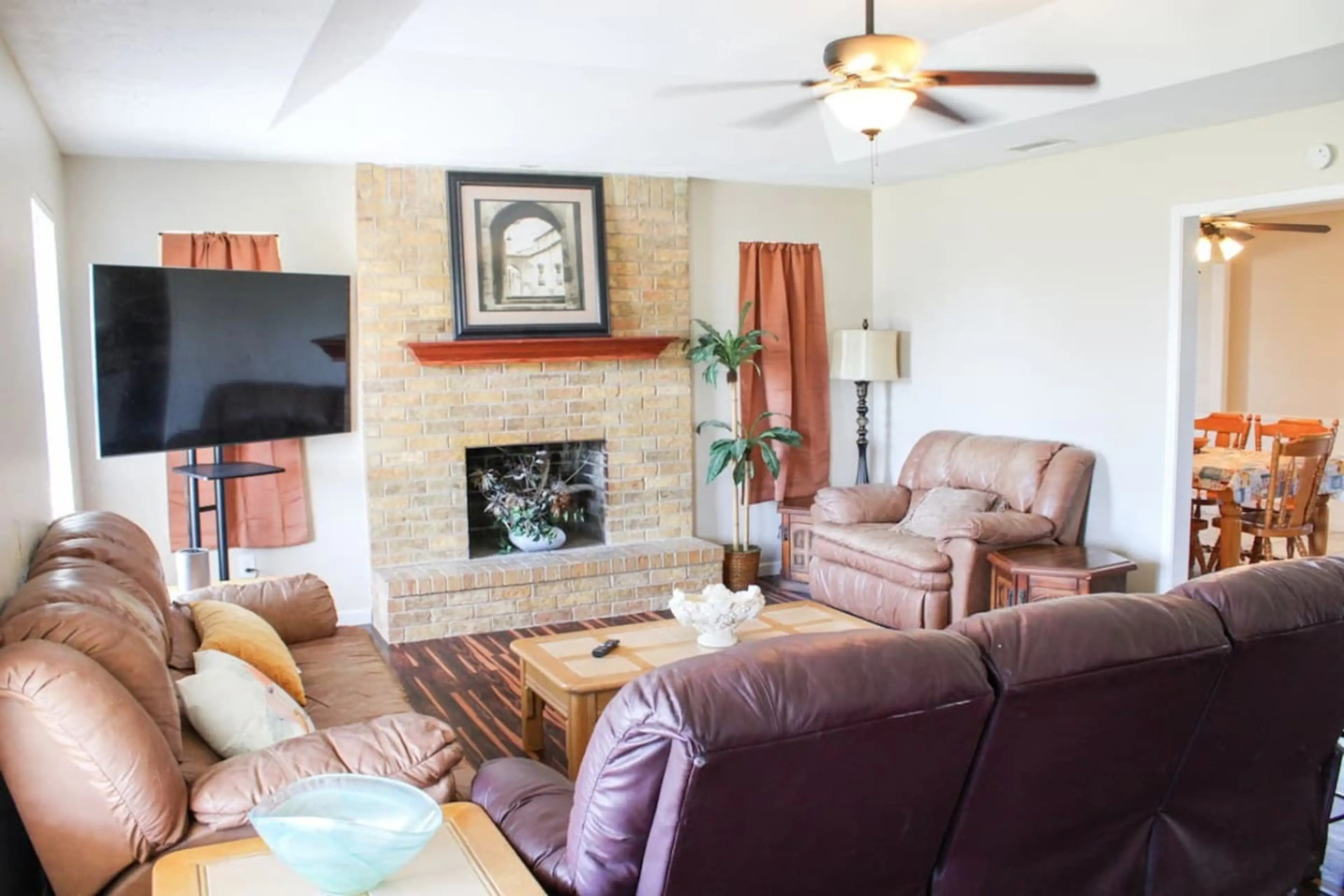Spacious 4BR retreat in Corsicana with lake views, fire pit, fenced yard & patio seating. Sleeps 7 comfortably with 3 queen beds, 1 double, and 1 twin. Fast WiFi, coffee bar, smart TVs & work desk. Peaceful setting near Richland-Chambers Lake—clean, comfortable & perfect for families or extended sta...